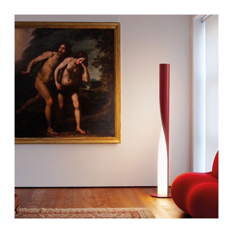 Evita is a dimmable floor lamp. Composite structure in multilayer paired with steel and thermoplastic materials, opaline satined diffuser.