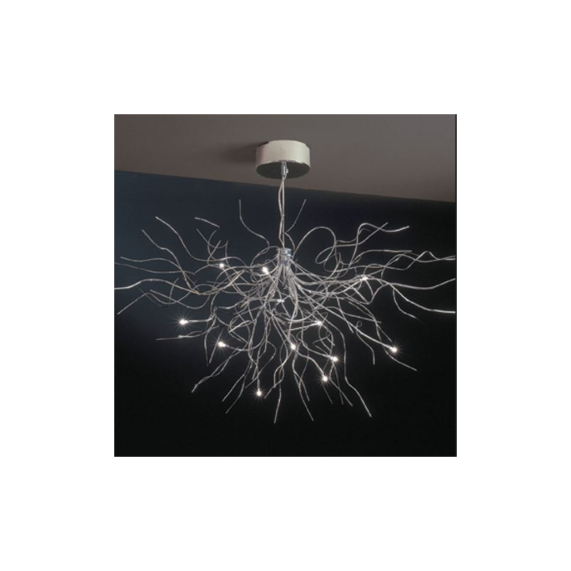 Mouldable hanging lamp with diffused lighting, made with copper wires, with a polished chrome finish.