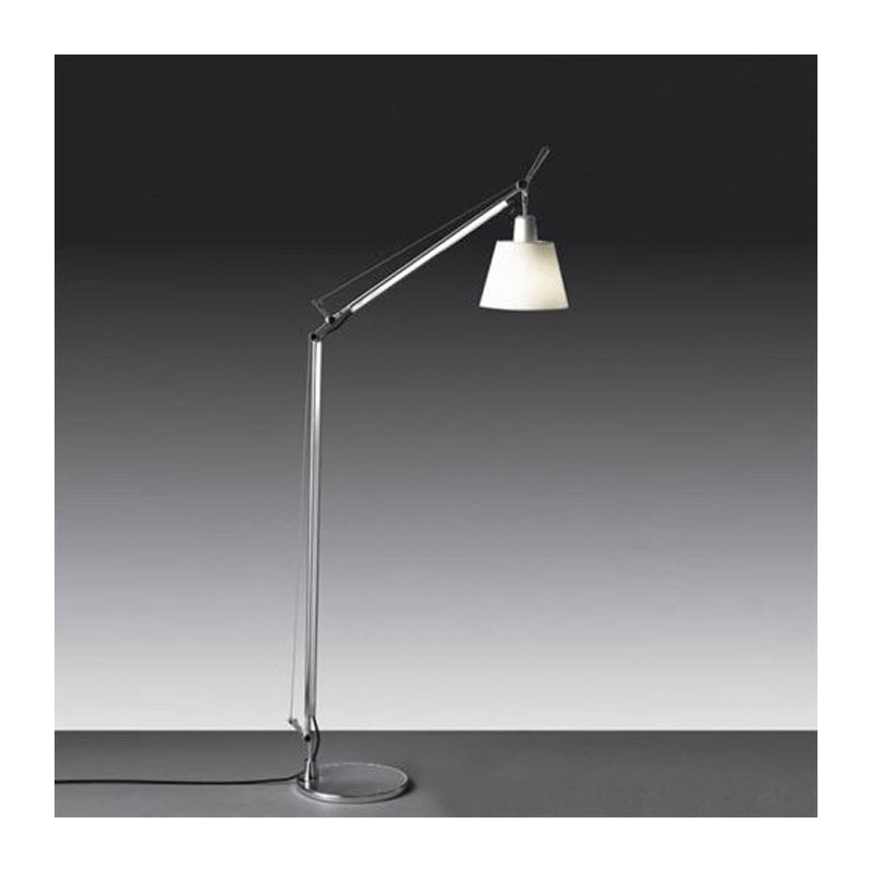 Structure with adjustable arms in burnished aluminum, diffuser in parchment paper supported by a plastic material.