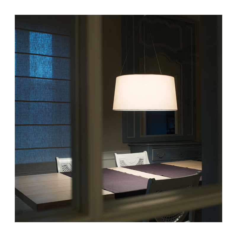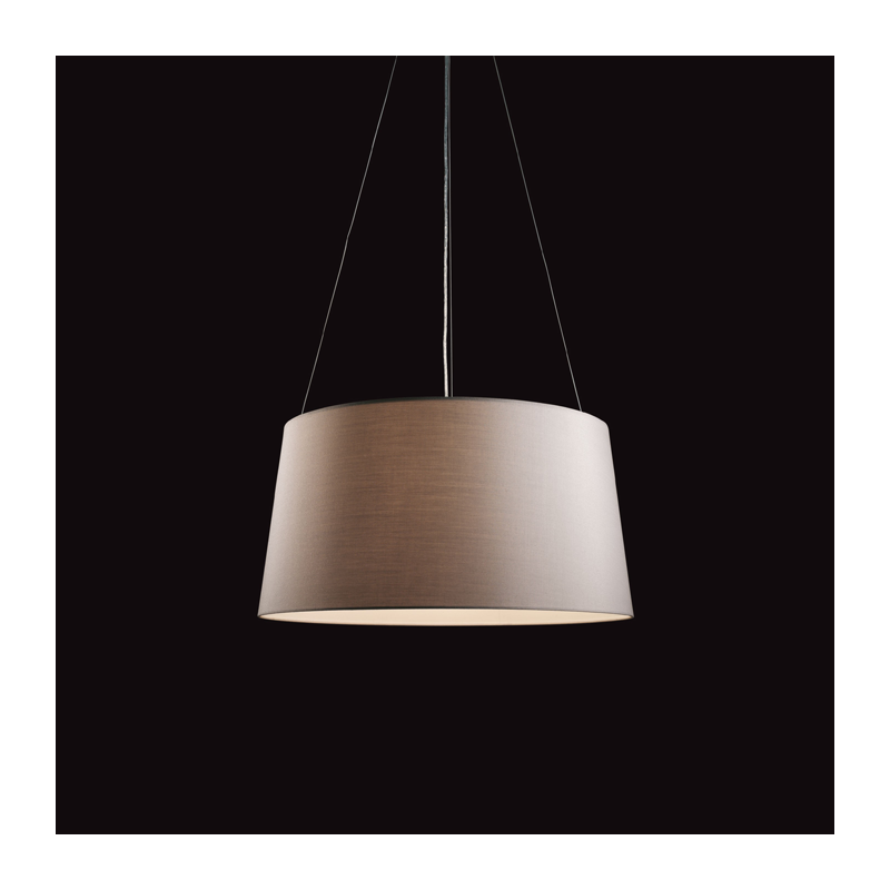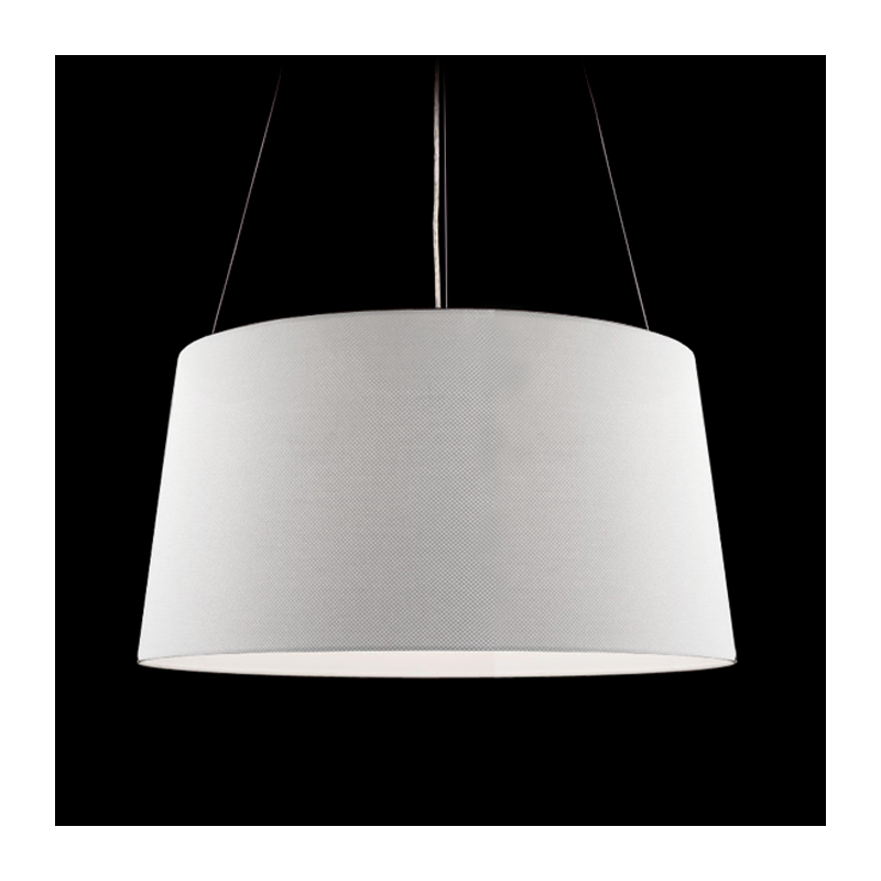 Kundalini Tripod suspension lamp Tripod is a suspension lamp, structure made up of varnished grey or white metal. Lampshade characterized by a fireproof fabric closed by an aluminum micropore and anodized plate. Tripod is also available in the floor and table edition.