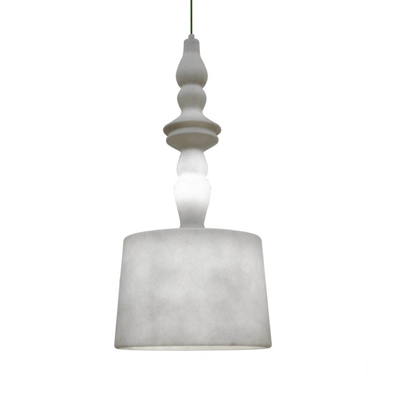 Lampada a sospensione per esterno in vetroresina dal gusto orientale.