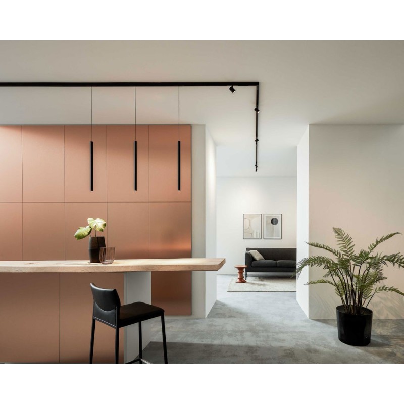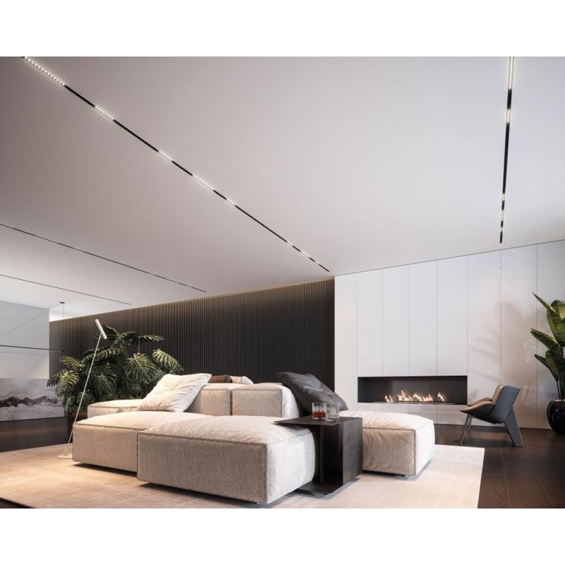 Il Binario magnetico LED può essere installato a soffitto o parete e può essere usato come elemento singolo, o come modulo per composizioni di varie lunghezze senza alcuna zona d’ombra.