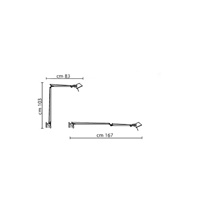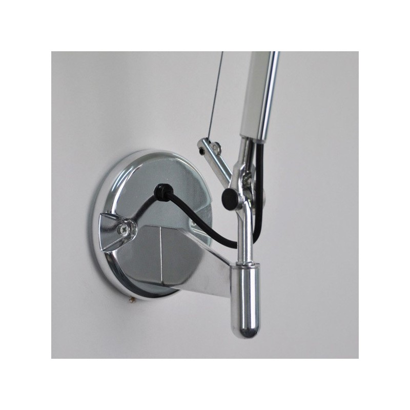 Lampada da parete con struttura a bracci mobili in alluminio lucidato.