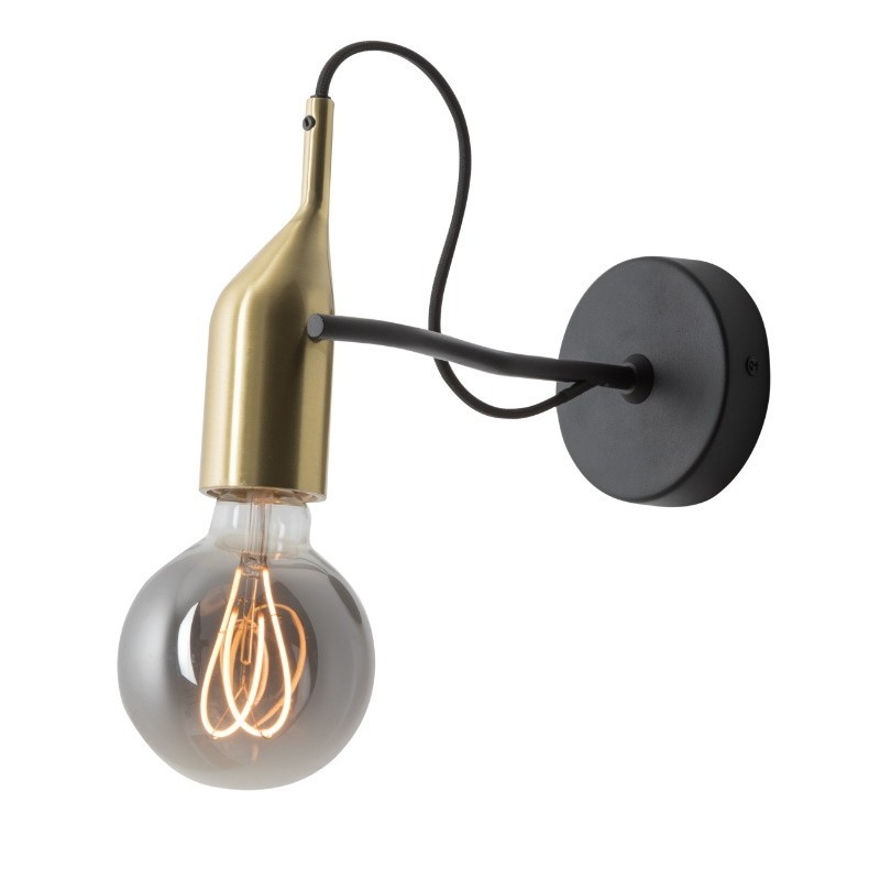 Lampada da parete dallo stile vintage composta da portalampada in ottone spazzolato e struttura in metallo nero opaco.