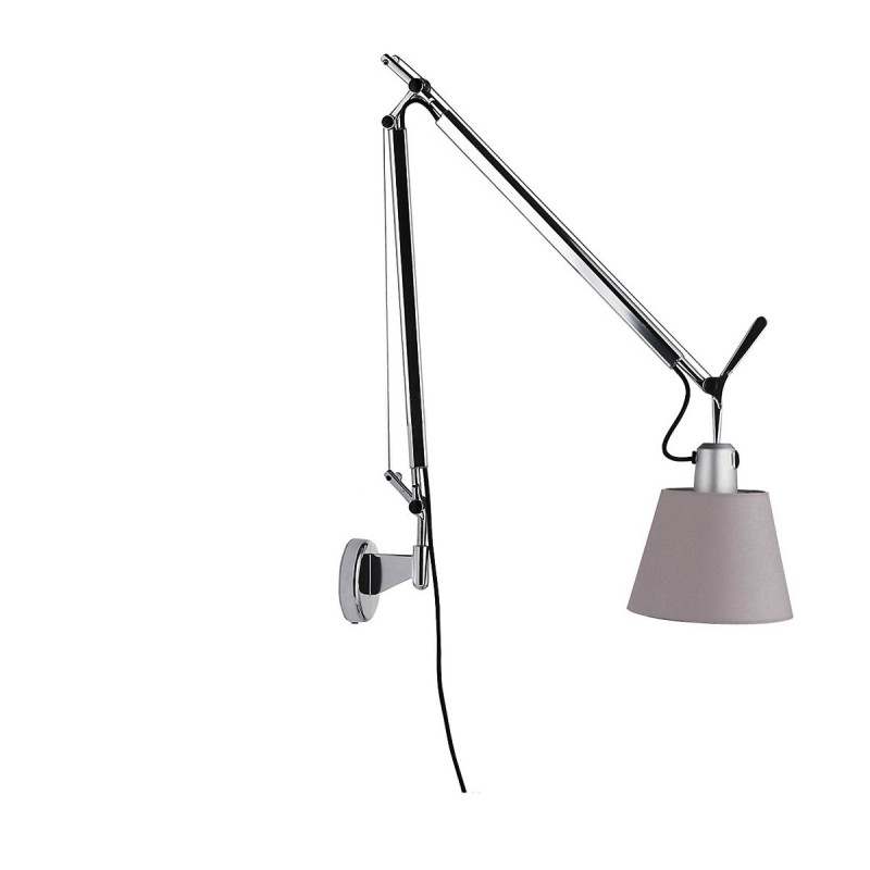 Lampada da parete con struttura a bracci mobili in alluminio lucidato.