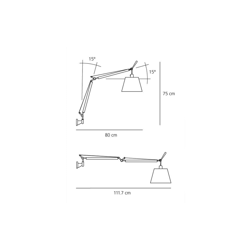 Il diffusore della lampada da parete Tolomeo Basculante, nel normale utilizzo, si dispone verticalmente, indipendentemente dall’angolazione del braccio ottenendo un 'illuminazione diretta semi/diffusa.
