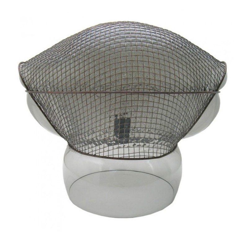 La griglia metallica che racchiude il vetro soffiato dà vita a giochi di luce e ombre.