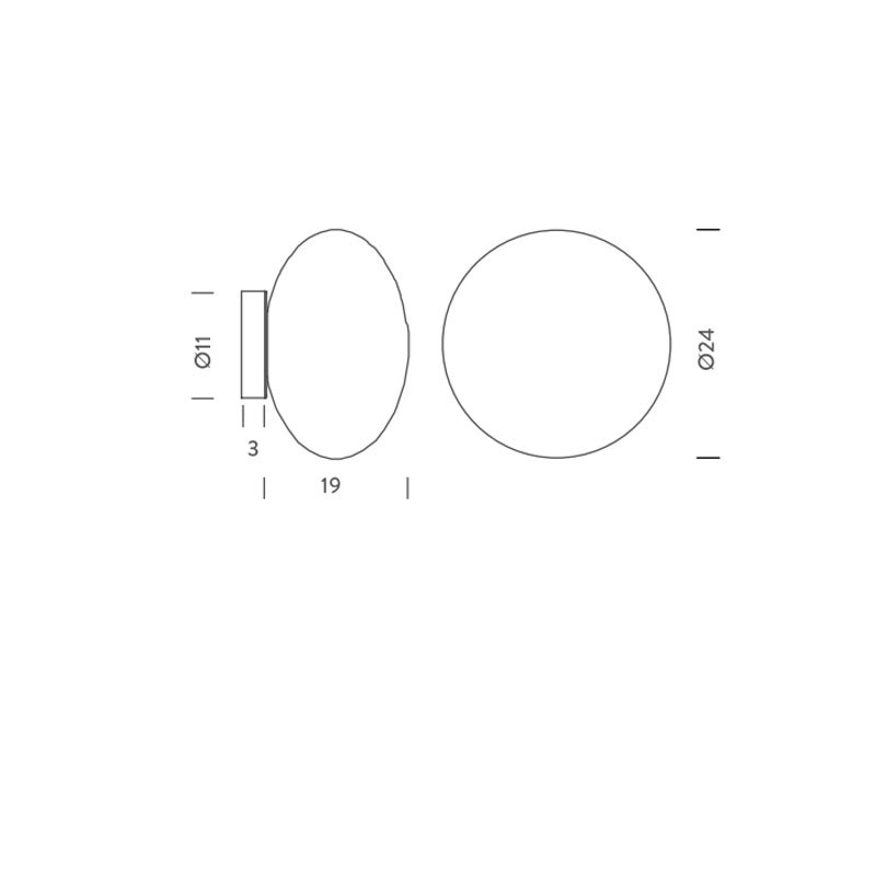 Lampada installabile a parete e a soffitto con diffusore in vetro soffiato opalino.